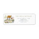 Charming return address labels with a watercolor illustration of a country style house with a wildflower garden.