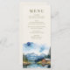 Hochzeitsmenü mit Aquarelldesign inmitten einer reizvollen rustikalen Hochzeitsstall, eingebettet in einen ruhigen See, gerahmt von majestätischen Bergen und mächtigen Kiefernbäumen. Die Landschaft in Aquarellfarben spiegelt die ruhige Schönheit eines sonnigen Tages wider, wobei die warmen Holztöne der Scheune sich perfekt in den stillen Gewässern widerspiegeln. Ideal für eine rustikale Scheunenhochzeit, ergänzt dieses Design Feierlichkeiten in hüttenbezogenen Umgebungen oder bezaubernden Landschaften. Das ruhige Seeufer-Ambiente Anzugs verbindet die romantische Hochzeitsromantik einer Berghochzeit mit dem entspannten Charme einer gemütlichen Hochzeit im Freien. Ob Sie eine Frühjahrshochzeit am See oder eine Herbsthochzeit planen, dieses Design Set ist der perfekte Ort für einen Tag, der von rustikaler Eleganz und natürlicher Schönheit geprägt ist. Durchsuchen Sie meine Country Lake Wedding Kollektion für die Koordination von Einladungen, Schreibwaren, Schildern und Hochzeitsdekor. Melde mich, wenn du weitere Vorlagen hinzufügen willst.