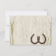 Hufeisen und das Aussehen alten Holzes auf unserer "Country Meadow" Hochzeitskarte. Passen Sie diese rustikale Einladung mit Ihrem Lieblings-Schriftart und Textstil für Ihre Hochzeit an.