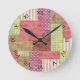 Country Patchwork Chic Pattern Quilblocks Runde Wanduhr