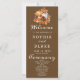 Bewundern Sie die Faszination des Herbstes mit diesem fesselnden dunkelbraunen Hochzeitsprogramm. Das moderne und böhmische Design zeigt die wesentlichen Elemente des Herbstes: strahlende, orange- und serenweiße Kürbis, aufwändige Akkorde und ein reichhaltiges Wandteppich aus lebhaften orangen und grünen Blätter. Im Kern ergänzen zwei auffallende orangefarbene Kürbis harmonisch einen eleganten, weißen Kürbis, der ein Kernstück bildet, das das Wesen der Saison erahnen lässt. Radiante Blätter in verschiedenen Orange- und Grüntönen tanzen herum und schaffen einen faszinierenden Hintergrund, der die natürliche Schönheit des Herbstes verkörpert. Die Rückseite des Programms präsentiert essenzielle Hochzeitsdetails in einer klassischen Mischung aus Schwarz und Grau und verwendet einen einfachen Block Schriftart für Klarheit und Leichtigkeit. Die Wendepunkte Welcome, Zeremony und Wedding Party heben das Wesentliche der Veranstaltung hervor. Sie sind zart in einen wunderbar dekorativen Skript-Schriftart eingebettet und verleihen dem Ganzen ein Gefühl von Eleganz und Charme. Dieses dunkelbraune Hochzeitsprogramm verkörpert den Geist des Herbstes und verbindet sein bezauberndes Farbschema mit modernem Design, um den Reiz von Herbsthochzeiten zu ergänzen und zu betonen.