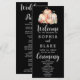 Feiern Sie das Wesen des Herbstes mit unserem bezaubernden Black Wedding Program, geschmückt mit einem modernen böhmischen Design mit Kürbissen und Blätter. Das spektakuläre Arrangement umfasst drei köstliche helle Orangenkürbis, begleitet von einem eleganten, orangen und weißen karierten Kürbis. Die orangefarbenen und grünen Blätter ergänzen das Design und verströmen den Charme der Herbstsaison. Dieses Programm, das für Herbst- oder Herbsthochzeiten konzipiert wurde, verkörpert den Geist der Saison auf raffinierte Weise und verbindet zeitgenössische Elemente mit rustikalem Charme. Die Vorderseite zeigt eine auffallende visuelle Darstellung der Schöpfung des Herbstes gegen eine schlanke schwarze Leinwand, die eine exquisite Verschmelzung moderner Ästhetik mit einer Touch rustikaler Eleganz bietet. Auf der Rückseite präsentieren sich die Details der Hochzeitsfeier elegant in einer klassisch schwarz-grauen Farbpalette, die vorwiegend in einem einfachen Schriftart für ein gepflegtes und raffiniertes Aussehen präsentiert wird. Insbesondere die Worte Welcome, Zeremony und Wedding Party sind in einem zauberhaften und anmutigen Script-Schriftart verziert, der dem Gesamtdesign eine Touch von Charme und Verfeinerung verleiht. Das Schwarze Hochzeitsprogramm, eine künstlerische Mischung aus Modernität und Saisonverlockung, sorgt für die Bühne für eine bemerkenswerte, im Herbst inspiriert Feier.