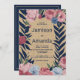 Country rustic ivory navy blue pink floral Wedding Einladung