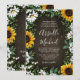 Country Rustic Sonnenblume Daisy Wedding Einladungen - mit einem Stallholz Hintergrund dekoriert mit Aquarellfarben, Sonnenblumen, Grün, Babyatmen und Lilie des Tales.