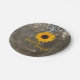 Land Rustikale Sonnenblumen Hochzeitspapier Plate. Schöner rustikaler Schoß und Platt auf einem braunen Holzboden. Eine gelbe Sonnenblume rundet das Design ab. Landschaftlich rustikale Stallholzplanken, goldgelbe Sonnenblumen und Burlace mit Imitaten Metall-Verzierungen auf der Oberseite. Weitere Einladungen zur Holzhochzeit finden Sie unter https://www.zazzle.com/oddlotweddings