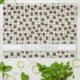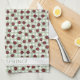 Dieses Frühjahr-Küchentuch zeigt handgezeichnet Ladybugs, die über einen leichten Salbei-Gingham-Muster-Hintergrund tanzen, mit dem anpassbaren Text "Hello, Spring!".