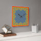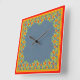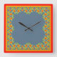 Eine hübsche quadratische Wall-Uhr, mit einem Rand von Pot-Marigold-Blume auf einem Indigo-Hintergrund mit Scarlet-Rand. Teil der Posh & Painterly 'Marigold Medley' Kollektion.