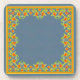 Ein Set von sehr hübschen, quadratischen, korkgestützten Untersetzer oder Drink Mats, mit einem Rand von Pot Marigold Blume auf einem Indigo-Hintergrund. Teil der Posh & Painterly 'Marigold Medley' Kollektion.