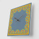 Eine hübsche quadratische Wall-Uhr, mit einem Rand von Pot-Marigold-Blume auf Indigo-Hintergrund. Teil der Posh & Painterly 'Marigold Medley' Kollektion.