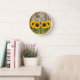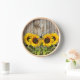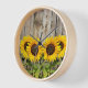 Mit dieser von Sonnenblumen entworfenen Wanduhr können Sie das Interieur im Landhausstil entdecken. Diese rustikale Uhr besticht durch fröhliche gelbe Sonnenblumen mit einem Holzzaun.