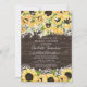 Elegante, weiche gelbe Sonnenblumen sind in sanfte, grüne Eukalyptus-Grünflächen eingebettet. Ein dunkler Holzboden, Saitenleuchten und Spitzen verleihen den Sonnenblumen eine Landschaft.