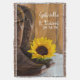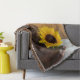 Personalisieren Sie das bezaubernde Country Sunflower Wedding Throw mit den Namen der Braut und Bräutigam und Ehefeiertag, um ein einzigartiges und nachhaltiges Sake-Geschenk für das Paar, das eine ländliche Farm oder Ranch Stil Nuptials geplant hat. Diese lässige und dennoch elegante, rustikale, schicke Hochzeitsdecke zeigt ein malerisches Blumenfoto mit braunen Lederschuhen und gelben Sonnenblumenblüten mit braunem Holzfußboden.
