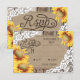 Sonnenblumen, gealterte Holzplanken und Spitze über Leinen-Look rustikalen Western Hochzeit RSVP-Karte Design.