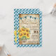 Country picknic inspiriertes Design mit blauem Gingham-Karo und Sonnenblumenstrauß in einem Maurerkirsch verpackt in Burlap und Spitzen und gebunden mit Wein rustikalen Baby-Dusche Einladungskarte.