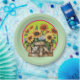 A Colorful Greens With A Country Sunflower Wooden Basket Of Flowers Round Paper Plate