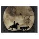 Ein Cowboy auf seinem Pferd, der das letzte der Ochsen für den Abend aufgerundet hat. Alle silhouettiert in Vollmond.