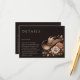 Genießen Sie Ihre Hochzeitsarbeit mit den eleganten zweiseitigen Detailkarten, die Ihr modernes Western-Thema ergänzen. Mit neutralen Blume und einem charmanten Cowgirl-Hutmotiv verbinden sie rustikalen Charme mit zeitloser Eleganz. Auf der einen Seite finden Sie wichtige Informationen zum Empfang, damit Sie wissen, wo Sie Ihren besonderen Tag feiern können, auf der anderen Seite finden Sie Informationen zu den Unterkünften für ein nahtloses und stressfreies Erlebnis. Diese auf hochwertigen texturierten Cardstock gedruckten Karten behielt Ihre Gäste stilvoll auf dem Laufenden.