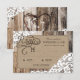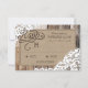 Weiße Spitze über Leinen-Look Hintergrund und alten Holzplanken rustikalen Western Hochzeit RSVP Karte Design.