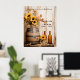 Rustikales Hochzeitsposter für Ihre Gäste, alte orangefarbene Glasflaschen und ein Whiskey Barrel gefüllt mit hübschen Sonnenblumen. Erstellen Sie Ihre eigene, indem Sie Text und Schriftart personalisieren.