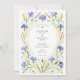 Erleben Sie eine Feier mit natürlichem Charme und künstlerischer Eleganz. Diese atemberaubende Hochzeitseinladung zeigt eine handbemalte Aquarellgrenze von wunderschönen Wildblumen, die lebendige Maisblumen in den Farbtönen Maisblume und Weichlavender zeigt, die elegant mit rustikalen Stalks aus goldenem Weizen verwoben sind. Das symmetrisch inspirierte Jugendstil-Design mit seinen grünen und goldenen Weinreben schafft einen schönen ovalen Rahmen für Ihre Hochzeitsdetails. Ein zartes, handgemaltes Goldoval im Zentrum fügt eine Touch von edlem Luxus hinzu. Dieses Design ist perfekt für eine ländliche Umgebung, rustikal-schick, Spätsommer oder Frühherbst Hochzeit.