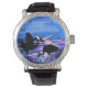Uhr, Klassische Damenuhr mit schwarzen Lederarmband