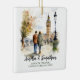 Couple in London England UK Watercolor Travel Art Keramik Ornament. Personalisieren Sie mit Ihrem eigenen Text. Das sind weitere 100% original Schnürhammer Designs. #TravelSouvenirOrnaments, #HandmadeTravelKeepsakes, #DestinationThemedOrnaments, #OrnamentsForTravelLovers, #UniqueTravelGiftOrnaments, #CustomTravelOrnaments, #TravelInspiredDecorations, #WorldTravelCollectibles, #Ornaments Reisende, #PersonalizedTravelOrnaments