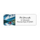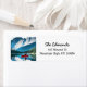 Kajak thematische Rücksendeadressen-Aufkleber. Ein Paar in einem Kajak auf dem See umgeben von schneebedeckten Bergen.