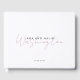 Personalisiertes Gästebuch mit Vornamen und hübschen rosa Nachnamen des verheirateten Ehepaares. Sie können Typfarben und Schriftart ändern, indem Sie auf das Entwurfswerkzeug klicken.
