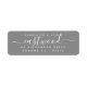 Ein Monogramm mit weißem Skript im Vintagen Sans-Serif-Typ, kontrastiert mit einem handgeschriebenen Stil-Script-Schriftart Rücksendeadresse-Label. Moderne minimalistische Stilnoten für frisch verheiratete oder langjährige Ehepartner. Bestellen Sie größere Mengen für mehr Einsparungen. Weiß auf grau.