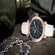 Stil: Damenuhr Rose Gold Vintage mit weißem Lederarmband