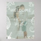 Seaside on the beach sage green ocean destination wedding custom photo welcome sign printable poster featuring hand drawn starfish and ocean corals, and a chic whimsical retro style handwritten calligraphy script. +++++++ All colors are editable. Digital download available, +++++++++ Suitable for casual trendy beach coastal summer weddings.