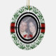 Coupels erste Weihnachts-grüne Damast Muster kundenspezifische Foto-Ornament. Es gibt einen schwarz-weißen Kreis für Ihr Foto und einen schwarz-roten Streifen.