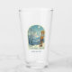 Trinken Sie Glas von einem wunderschönen Skiurlaub in den schönen französischen Bergen von Courchevel, Frankreich! Dieses Glas besticht durch einen Bogen mit einer atemberaubenden, blau-grauen Berglandschaft und im Vordergrund durch Retro-Skitafeln in orangefarbenem Stammesmuster. Das Design ist eine schöne Kombination aus Retro und modern, und ich hoffe, Sie genießen es!