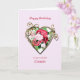 Eine romantische Geburtstagskarte. Ein Gemälde von Rose wird von einem vergoldeten goldenen Herz gerahmt. Geben Sie Ihrem Cousin einen Geburtstag mit einem schönen Gemälde eines Bouquets von Rose.