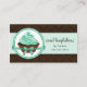 © 2012 Sozialite Designs. Unsere Business-Visitenkarte für Minze- und Schokoladenkuchen hat einen eleganten Kuchen, der mit einem Band und in einem Spitzen-Kreis verbunden ist. Ein dunkelbrauner Damast-Hintergrund mit den minzgrünen Farben ist wunderschön. Eine großartige Visitenkarte für Bäckereien oder Cateringe wie Desserttische. Personalisieren Sie diese Bäckerkarte mit Ihren Informationen.