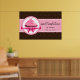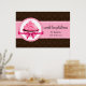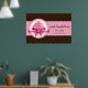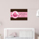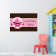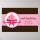 © 2014 Sozialite Designs. Elegantes Poster-Design mit einem Kuchen mit rosa Vereisung in einem runden Spitzen-Design. Ihr Text wird in ein rosa-weiße Banner mit einem schräggestellten Spitzen-Look Rand eingebettet. Ein rosa Band verleiht dem Design eine Touch Eleganz. Der Hintergrund hat ein braunes Damast-Muster.