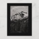 Ein Schwarz-Weiß-Landschaftsfoto einer Wolke füllte den Himmel und versuchte sich um einen schneebedeckten Berg zu wickeln. Bäume bedecken die umliegende Landschaft des höher gelegenen Berggipfels. Image Copyright ©2023 Kimberly J Tilley. zazzle.com/store/developingnature