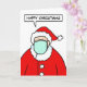 Ein Cartoon von Weihnachten mit Gesichtsmaske und Sprichwort "Happy Christmas". Das Bild ist Set vor einem knackigen, weißen Hintergrund.