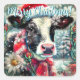 Cow Dreaming of Warmer Times Floral Personalized Quadratischer Aufkleber