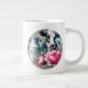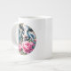This jumbo size coffee mug is shown in white with a cute farm cow art print.