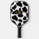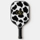 Schwarz-Weiß-Kuh-Druck mit goldenem Monogramm, Paddelpaddel mit gleichem Design auf beiden Seiten. Schwarzes Monogramm Oval und Gold Monogramm, das in einen Namen oder Text nach Belieben geändert werden kann.