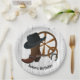 Eine grafische Abbildung von Cowboy-Hut und Stiefeln auf einem Party-Teller.