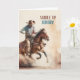 Wish your favorite cowboy, no matter if he's big or small, a Happy Birthday with this great country western themed greeting of a cowboy on horseback with a fun saddle up and ride message.