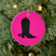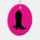 Schwarzer Western bootet vor einem tiefrosa Hintergrund.
