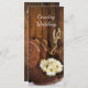 Erzählen Sie Ihren Gästen die Reihenfolge Ihrer Hochzeitszeremonie im Ranch-Stil mit dem charmanten Cowboy Boots, Daisies und Horse Bit Country Western Wedding Program. Dieses rustikale, schicke und individuell gestaltete Eichenheiratsprogramm bietet ein malerisches Blumenfoto mit einem Western Cowboystiefel, einen Blumenstrauß aus gelb-weißer Blume, weiße Perlenhalskette, Pferdchen- und Lederreine mit braunem, verwittertem Stallholz. Ideal für eine lässige Farm Party Zeremonie und Empfang.