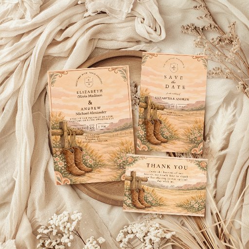 Cowboy Boots Desert Wedding Save The Date
