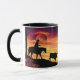Dieses "einer netten" Tasse… Kennzeichnet eine Silhouette eines Cowboys auf einem Pferd, das einen Longhorn-Ochsen während einer schönen Orange in Herden lebt