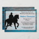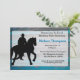Rustikale Cowboy-Geburtstagseinladung mit blauem Holzboden und Silhouette eines Cowboys, der auf einem Pferd reitet. Die perfekte Cowboy-Geburtstagsfeier für Ihren Freund, Ehemann, Papa oder einen besonderen Mann in Ihrem Leben.