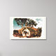 Eine alte Western-Kirche, die im Südwesten der Wüste sitzt, Pferde, die auf einer Seite an einen Anhalter geklemmt sind, auf der anderen Seite an einen geparkten Schnurren-Wagen.