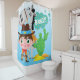Der kleine Cowboy wird diesen Duschvorhang mit einem Cowboy mit Hut und Stiefeln, Kanonen und Holster, einem grünen Kaktus, einem grauen und schwarzen Pferd und einer Polka gepunkteten Wolke mit Text, der BANG lautet, Liebe geben!!